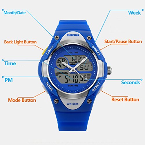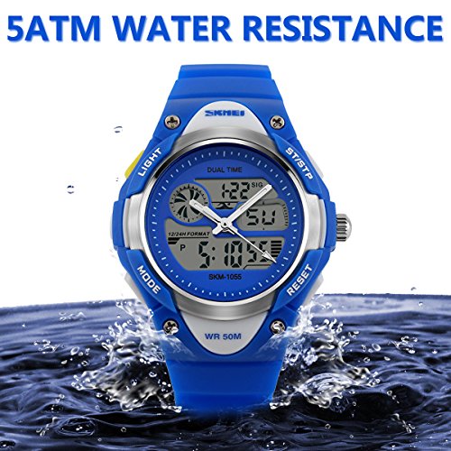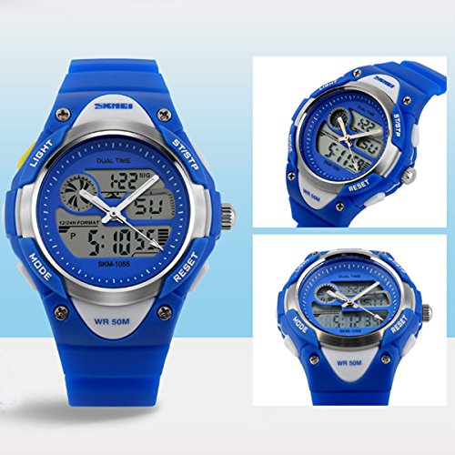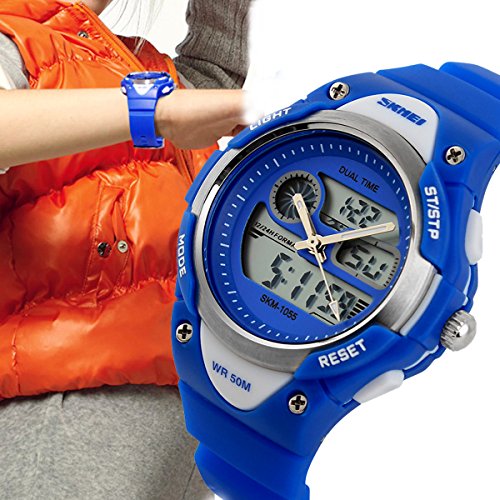-. Title : Kids Fashion Sports Waterproof Analog Digital Watches Dual Time Alarm Stopwatch Blue