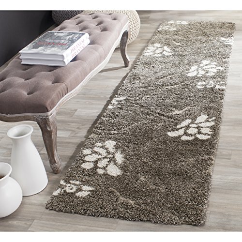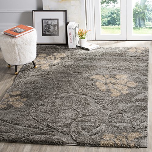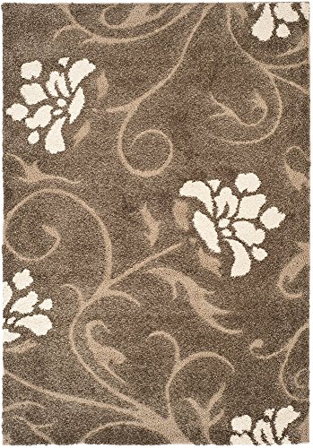 Soften your decor with this plush and elegant floral Florida Shag rug from Safavieh. The stems and leaves that comprise this floral motif have a lower pile height to create a multidimensional effect. The base color of this rug is a smoky greyish brown color and the focal flowers are beige.