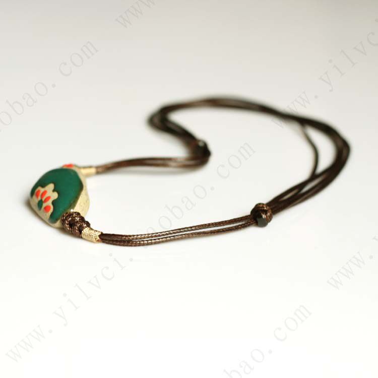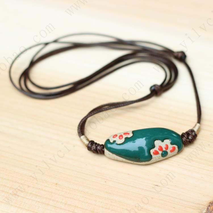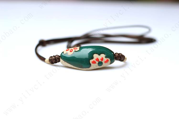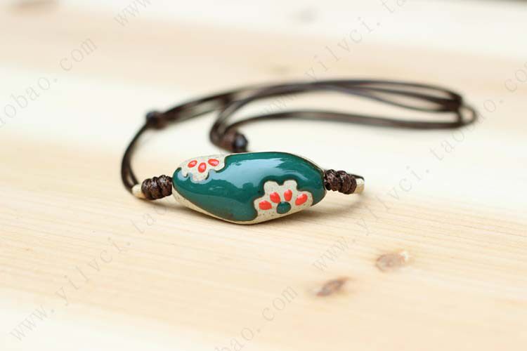 Exclusive fired enamel] [emerald necklace handmade ceramic jewelry national wind characteristics
