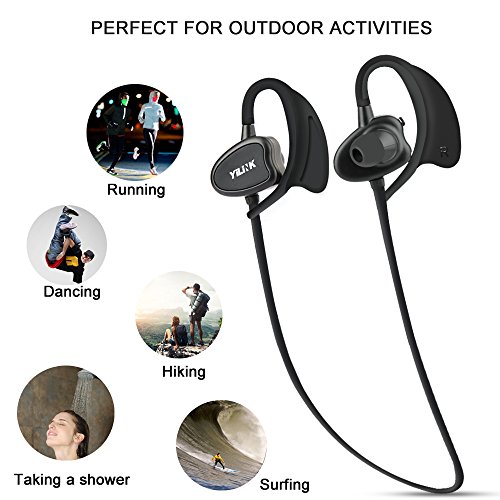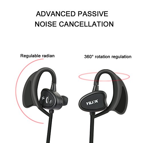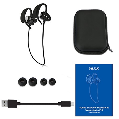 Wireless Bluetooth headphones, YILILK Professional IPX8 Waterproof Sports Bluetooth Headphones Noice Concelling Earbuds with Voice Control & Built-in Mic for All Smartphones and Tablets(Black)