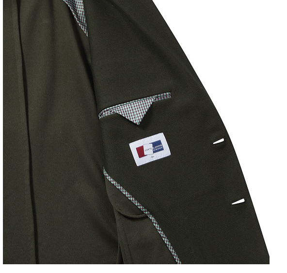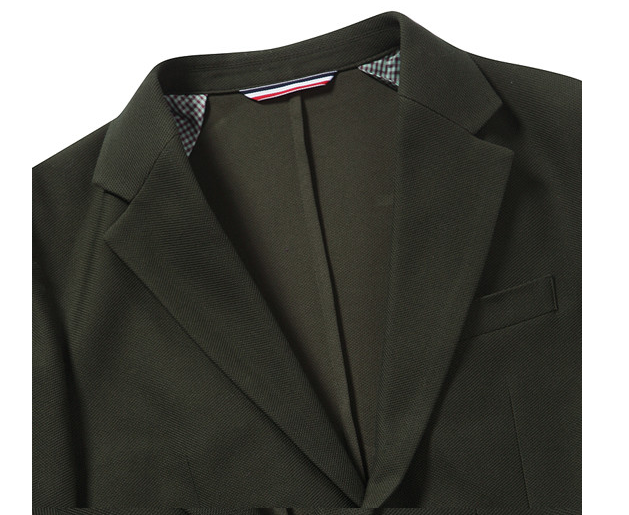 하꼬(자켓의 윗주머니)에 행거 치프 대용 배색 처리를 하여 세련된 연출이 가능