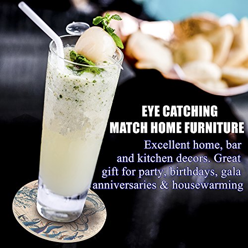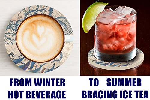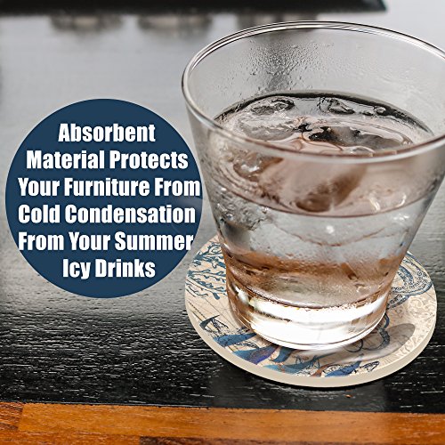 - AMPLE SIZE TRANSFER PRINTED CERAMICS WITH CORK MAT ON THE BACK SIDE - Big 4.3 inch ( 11cm ) diameter suits all types of drinking Glass like bourbon, highball, lowball, hiball, whisky glasses, and Mugs, Tumblers and Flasks, making them excellent bar tools and accessories. Using the largest size coster in the market, you prevent spillage since your drinkware is well contained.
