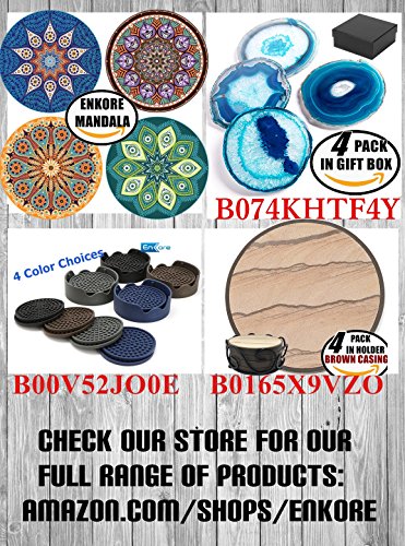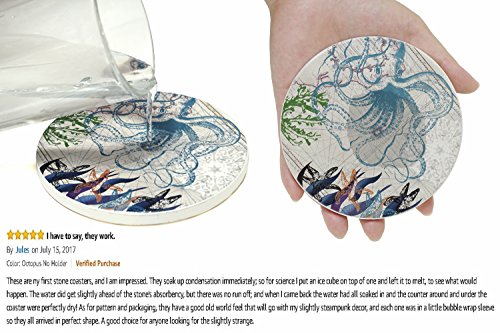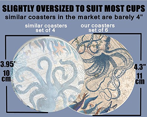 CHRlSTMAS SaIe - ENKORE Coasters Set of 6 Absorbent Natural Ceramic Thirsty stone - Modern Functional Coaster For Drinks - Octopus On World Map Novelty Design With Cork Backing NO Holder