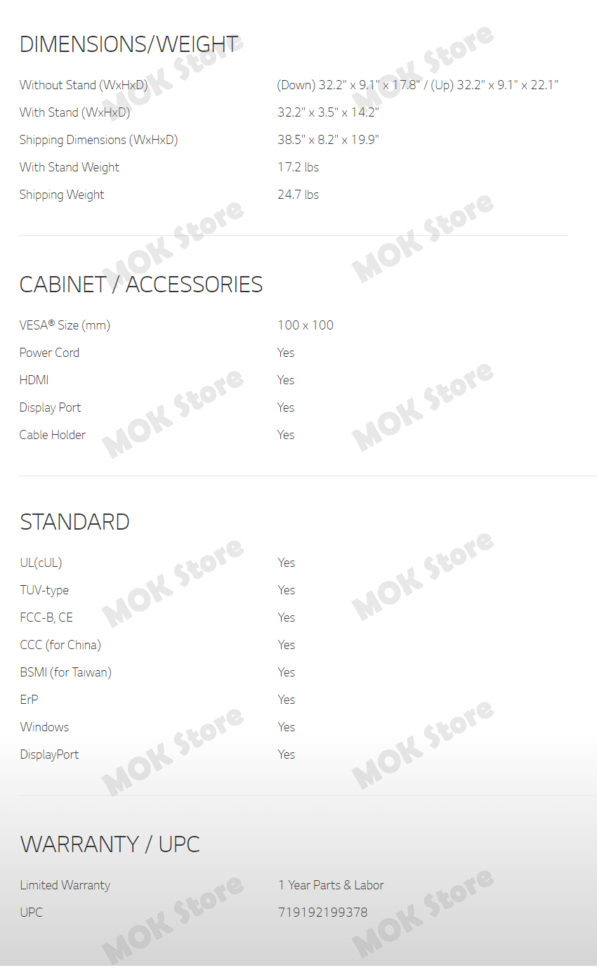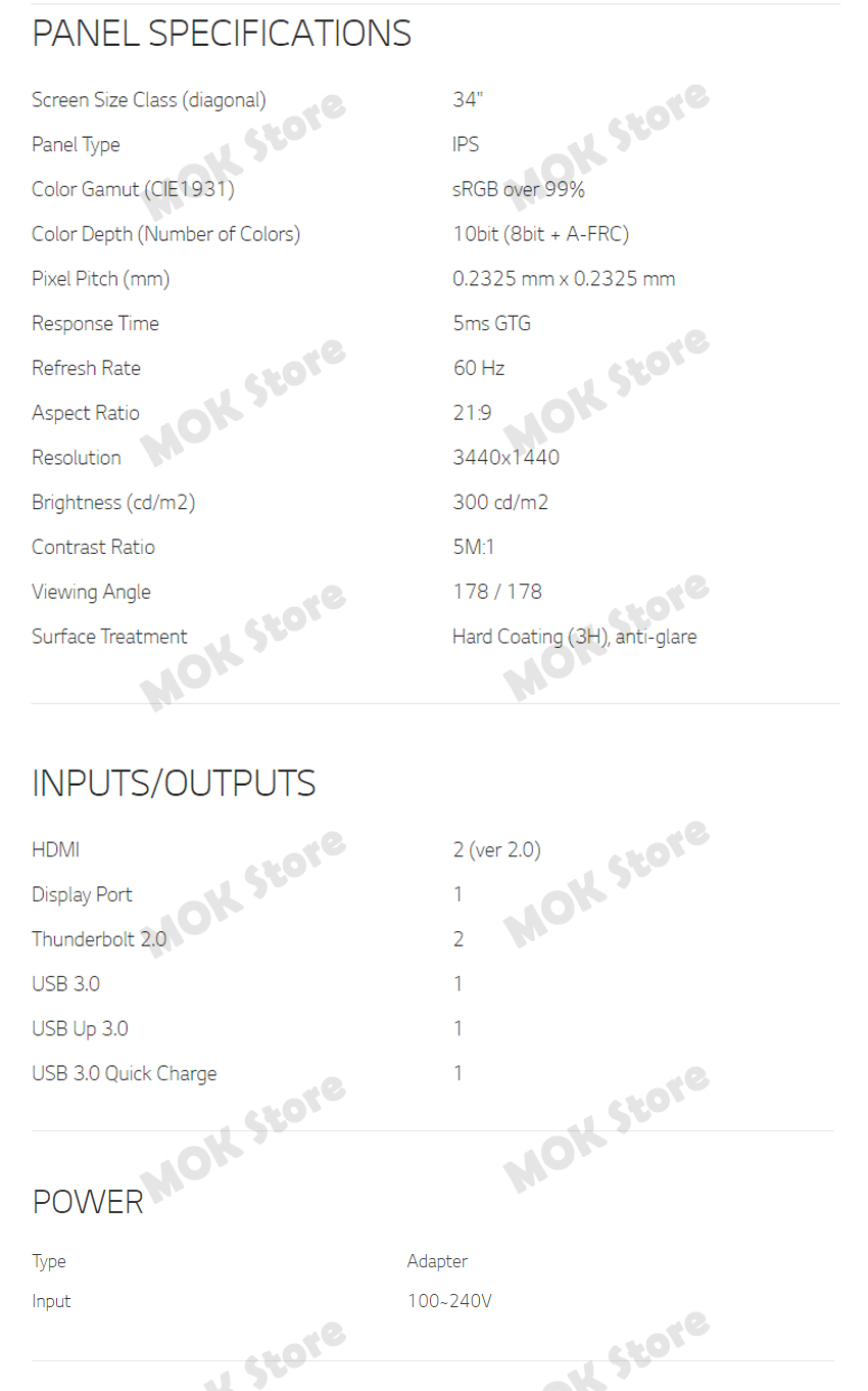 - Screen Size Class (diagonal) : 34"