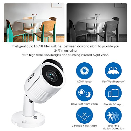 -. Title : ZOSI Super HD 4MP 1440P IP PoE Camera System,2560x1440 Resolution,30M IR Night Vision,IP66 Weatherproof Outdoor Indoor Bullet Security Camera with SD Slot,Support Motion Detection and Remotely View