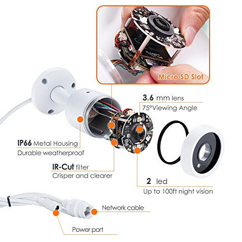 -. Feature : (1) Remarkable H.264/H.265 video compression,superior 1440P(4MP) Video Resolution,100ft Long Night Vision with 2PCS 42μ Big IR LED lights,wide 72 degree Viewing Angle,IP66 Level waterproof steady aluminum case / (2) This is a Power Over Ethernet (PoE) camera with Micro SD Slot(No SD Card Included, support up to 64G TF card ),come with 1M Ethernet cable(Support up to 330ft),no power adapter needed.It requires a separate PoE Injector or PoE Switch to operate,which are not included in the package ,need purcahse on your own. / (3) QR code scan via mobile device using our free FreeIP app (available on iOS/Android).Live view,recording and playback on your smart phone from anywhere with 3G/4G/wifi. Remotely view on computer via windows PC client,does not support MAC temporary. / (4) Smart Motion Detection and Email Alert:Set a perimeter zone or a 24x7 schedule to detect motion,you can block out select areas on the screen.This is to grant P.R.Ivacy in situations,people can not view of certain areas or activities.When a camera detects motion,it will send an real-time motion alert via email,it need to setup in PC client / (5) All systems CE & FCC certified with qualified power supplies.Guaranteed for 2 Year & Free life time Tech Support.//// Please refer to the last product images on the left side ,it will show you how to contact us for help ! Definitely respond within 24 hours!