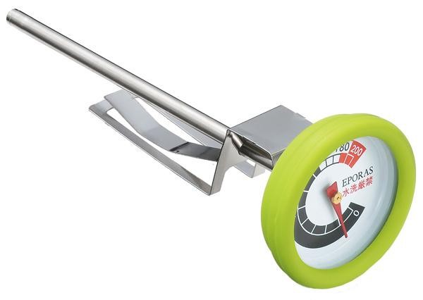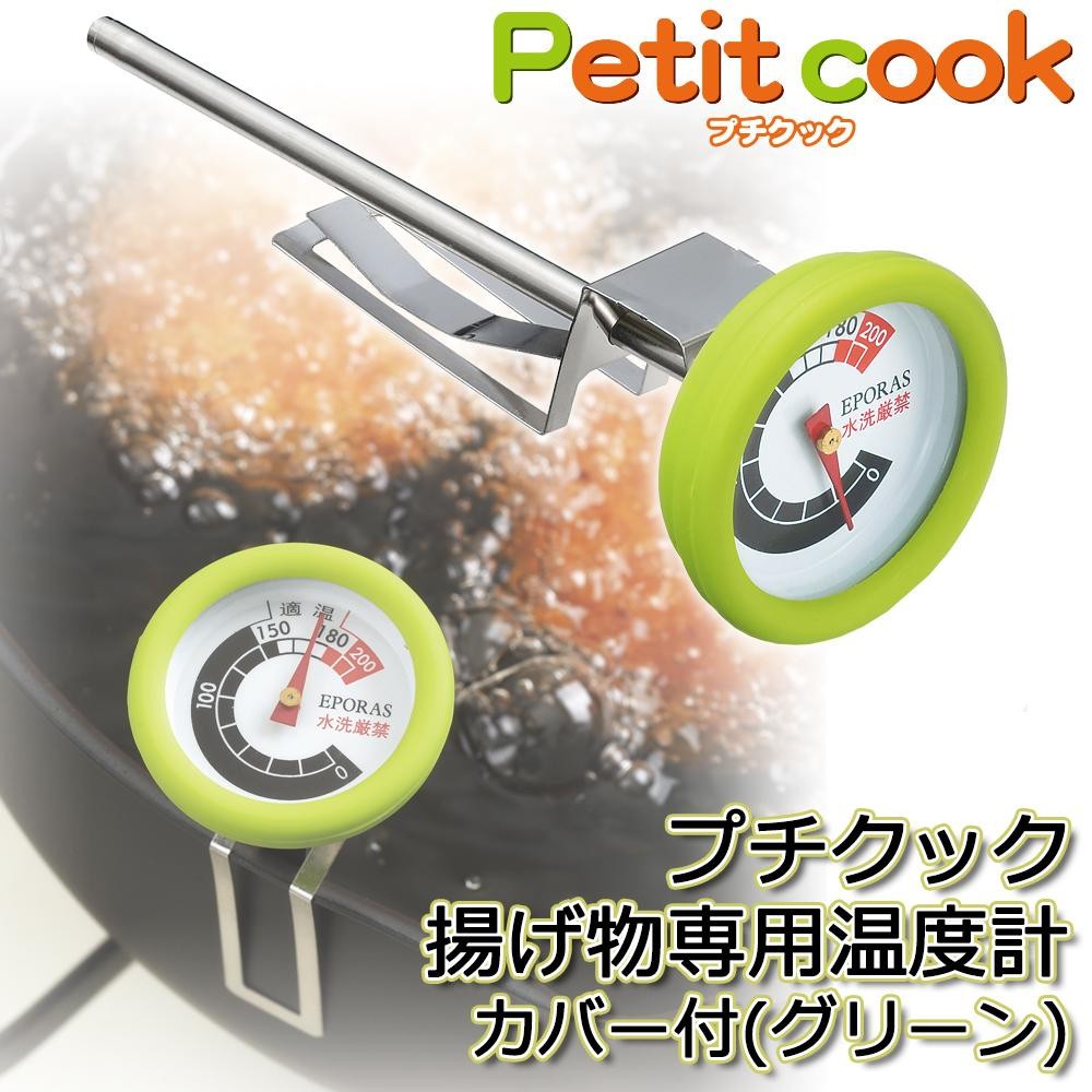 | 初心者の方もベテランの方も重宝する、揚げ物専用温度計です。適温が見やすい文字盤だからおいしく揚がる温度を逃しません!!取付け金具で簡単に取り付けできます。 |