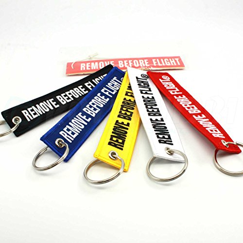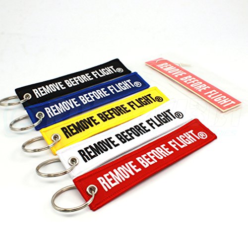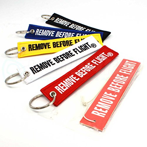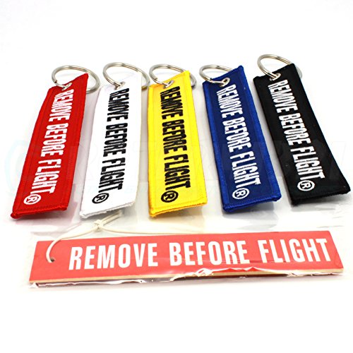 -. Feature : "REMOVE BEFORE FLIGHT" is a REGISTERED TRADEMARK of Born Aviation, LLC. Rotary13B1 is a licensed manufacturer. / Manufactured by : Rotary13B1 / Size: 12.5cm x 2.5cm Design: Double Sided. Keyring Size: 25mm / Total Pieces: 5 Keychains + 1 Air Freshener / Qty: 5 Key chains in Red, White, Yellow, Blue and Black colors + Air Freshener