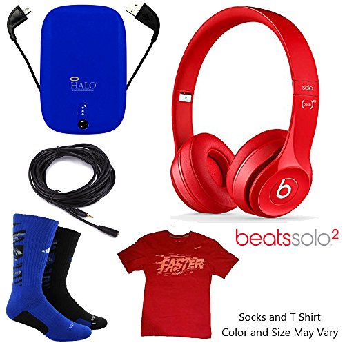 Beats By Dr. Dre Solo2 Wireless Headphones Sports Bundle w/ PowerBank, Auxiliary Cable (Red)