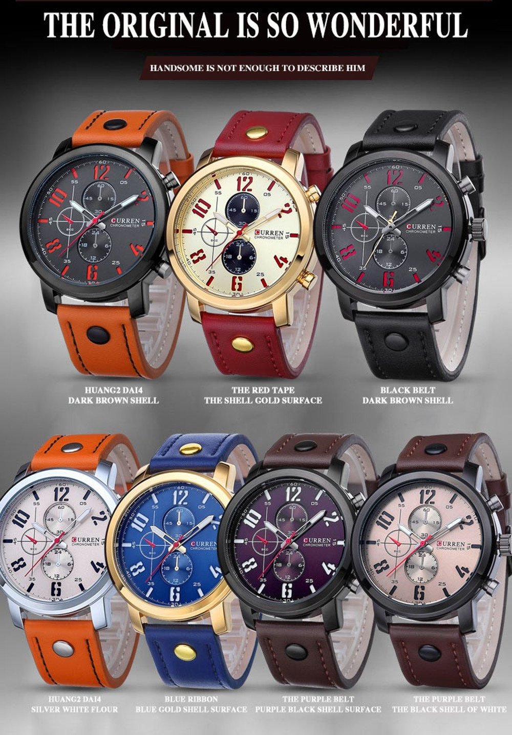 La bellezza CURREN quartz men's casual watches leather belts chronograph large dial face deca watch 30m living waterproof 013