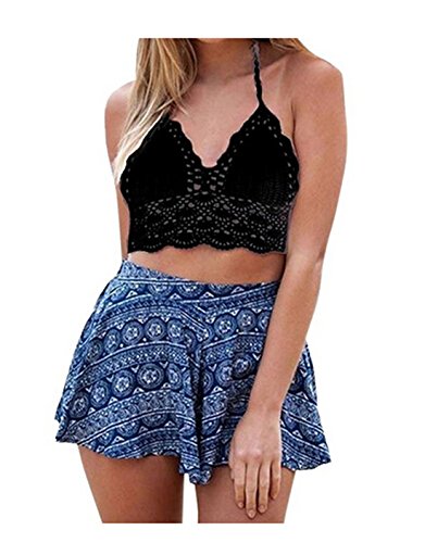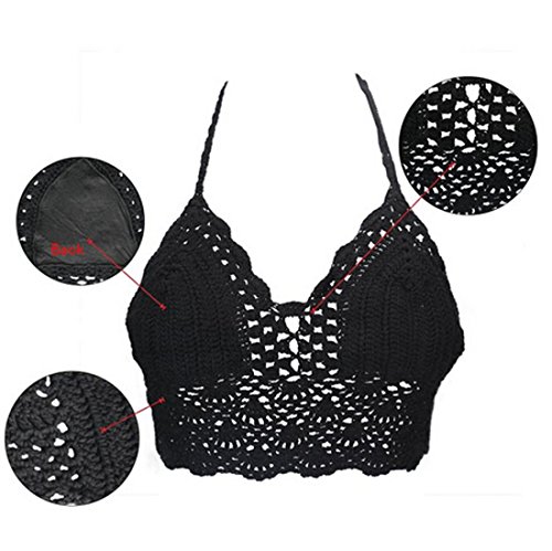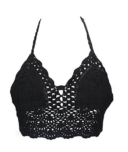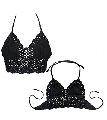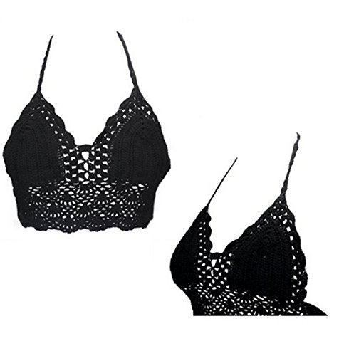 Title : Hqclothingbox Womens Hollow Out Crochet Crop Top Bra Halter Bikini (BLACK1)