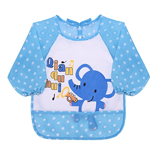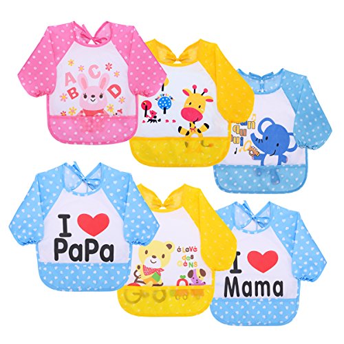 -. Binding : Apparel -. Brand : Walolo -. Color : 6 Pack -. Department : unisex-baby -. EAN : 0601490546322 -. Feature : Made from machine washable waterproof polyester / Sized to fit 6 - 36-month kids with adjustable tie closure; Length: 43 cm, Bust: 34 cm ,Sleeve: 34 cm / When the baby eating, playing time, this dress can be avoided by hand and get physical body, it will not get the whole body is mud, essential goods baby life / Design with long sleeves for full clothing coverage, Ideal to use for baby self feeding / The bibs have a pleasant quality for normal skin, fit thanks to flexible lacing to infancy and keep my little mouse clean. Of course, it is in P.R.Inciple fancier and more comfortable -. IsAdultProduct : 0 -. ProductGroup : Apparel -. ProductTypeName : ACCESSORY -. Size : 6-36Month -. Title : Baby Bibs with Sleeves, Waterproof 6 Pack Unisex Baby Waterproof Long Sleeved Bibs for 6-month Infants to 3-year-old Toddlers(Under 20kg) -. UPC : 601490546322