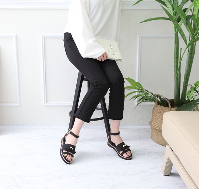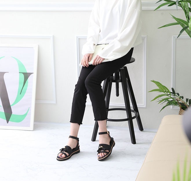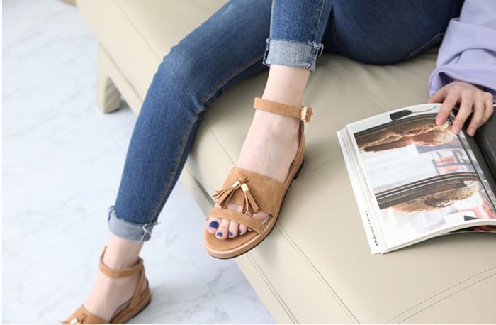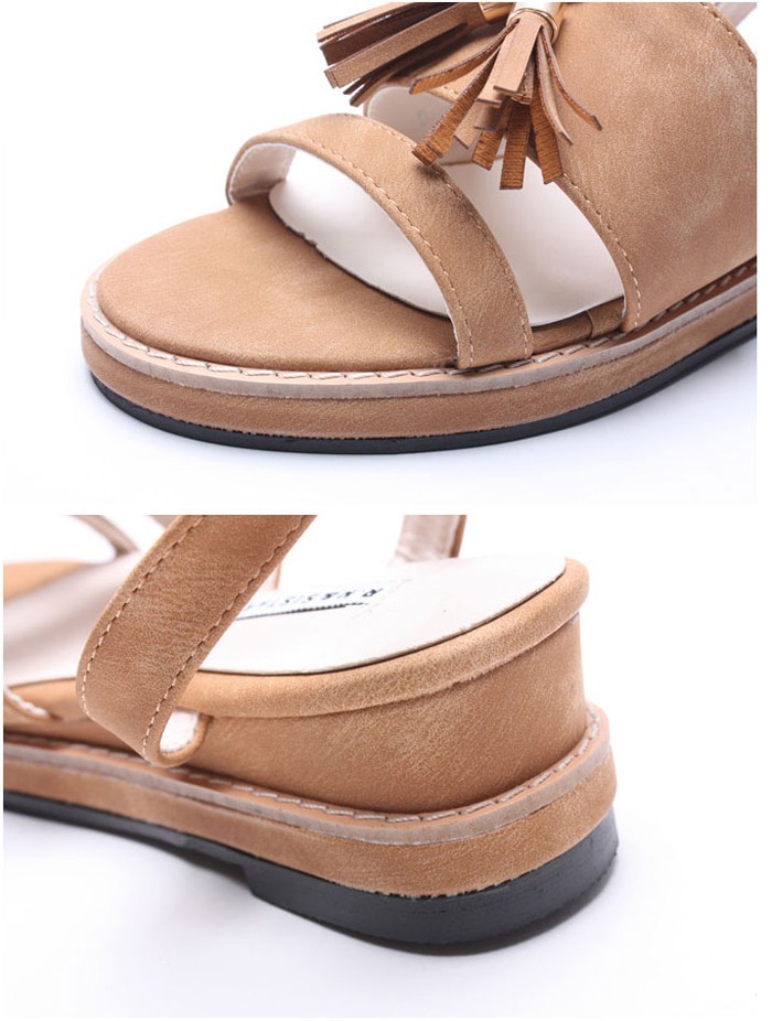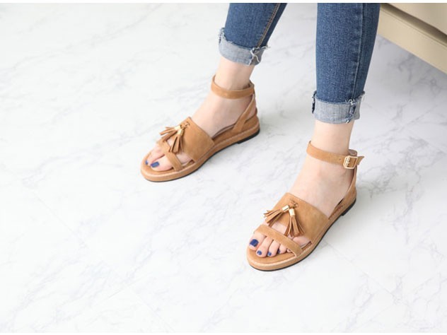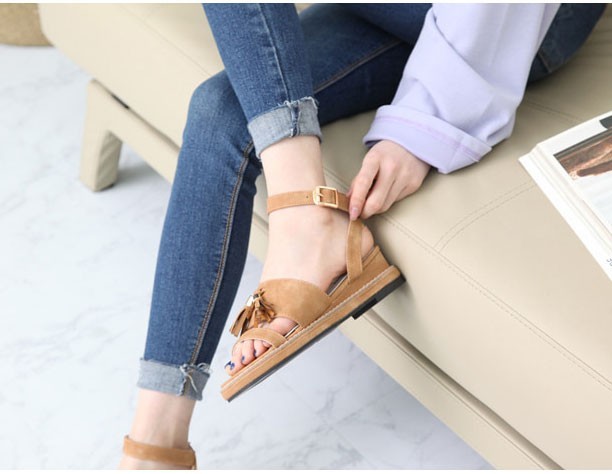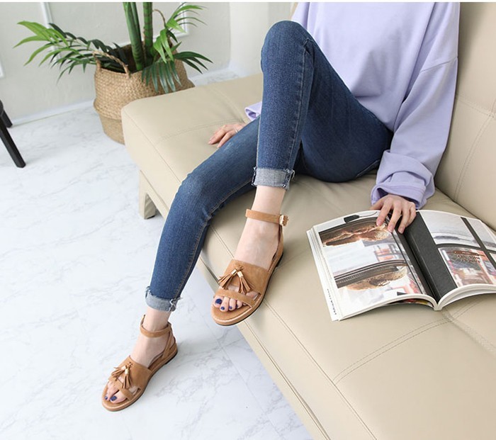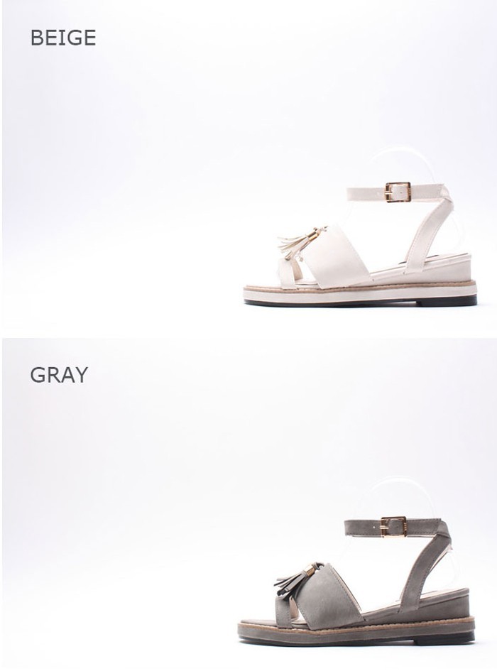 商品名:サンダル レディース ペタンコ フラットヒール アンクルストラップ タッセル 2018 春 ファッション 靴 婦人靴