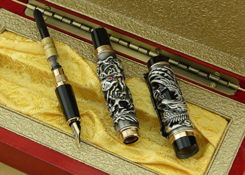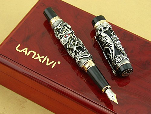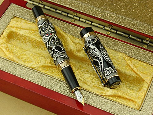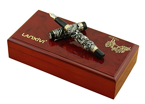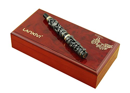 -. Title : Lanxivi® Jinhao Dragon Phoenix 3D Embossment Gray Fountain Pen Chinese Ruyi Clip Wooden Gift Box