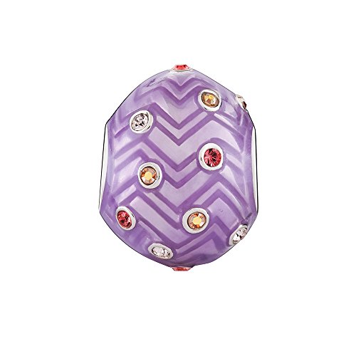 This Limited Edition Easter Egg in sterling silver features a fashionable chevron shape with bezel set Crystal Metallic Sunshine, Silk and Padparadscha Swarovski Crystals, and purple bass-taille enamelFeature