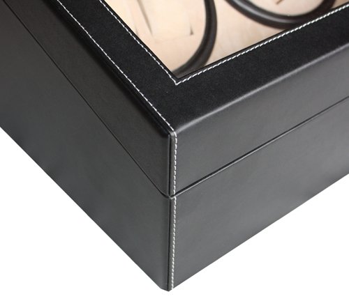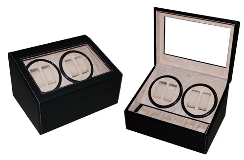 -. Binding : Watch -. Brand : TimelyBuys -. Department : unisex-adult -. EAN : 0816881010997 -. Feature : Tastefully winds four watches, while offering convenient storage for an additional six watches / Case measures 9 1/2" x 12" x 7" and individual watch slots measure 30 mm (2 3/4" L x 1 1/4" W); Pillow Size: 2 3/8" L x 1 1/4" W x 1 3/8" H / AC Power adaptor included; operates with 2 AA batteries as an alternative power source / Alternating clockwise and counterclockwise movement; Extremely silent motor / Movement Specifics: Rotates clockwise for 5 minutes, rests for 15; moves counterclockwise for 5 minutes, rests for 15, and repeats -. Label : TimelyBuys -. Manufacturer : TimelyBuys -. Model : 4+6 Winder -. MPN : 4+6 Winder -. PackageQuantity : 1 -. PartNumber : 4+6 Winder -. ProductGroup : Watch -. ProductTypeName : WATCH -. Publisher : TimelyBuys -. Studio : TimelyBuys -. Title : TimelyBuys 4 + 6 Quad Black Leatherette Automatic Watch Winder & Storage Case -. UPC : 816881010997