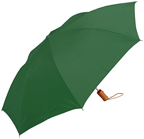-. Title : RainStoppers W001 Auto Open Collapsible Arc Umbrella with Wood Handle, Green, 42"