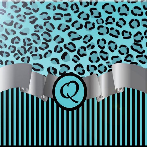 Rikki Knight RK-12intilec-2385 12" X 12" Letter "Q" Sky Blue Leopard Print Stripes Monogram Design Ceramic Art Tile
