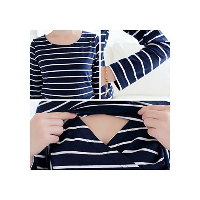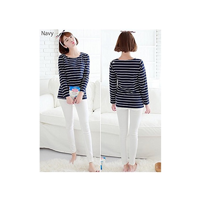 Hedea (《헤데아》) 마타니티 수유복 수유구 보더 긴 소매 T셔츠 캐주얼 릴랙스 룸 웨어
