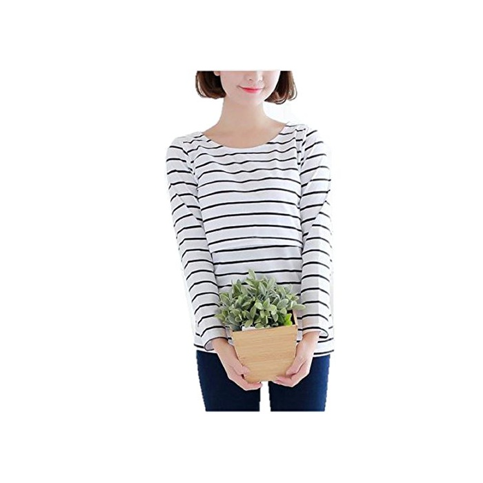 I Bee Stora Hedea (《헤데아》) 마타니티 수유구 보더 긴 소매 (화이트, XXL)