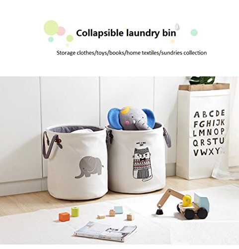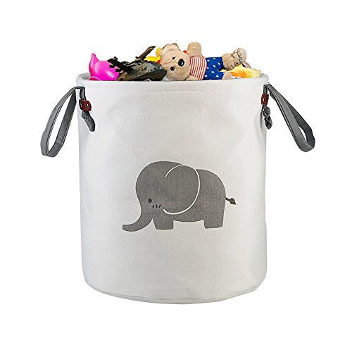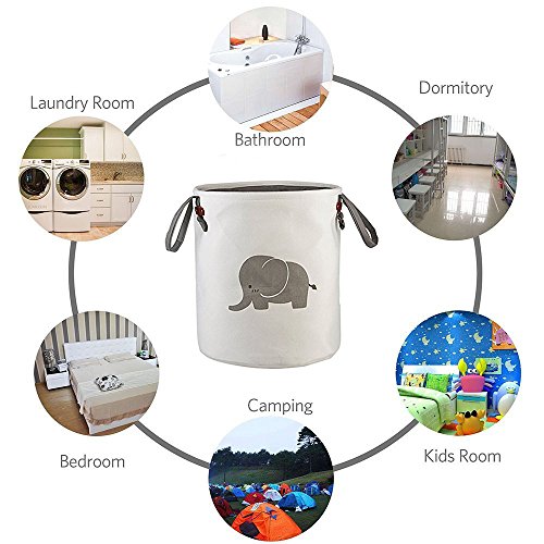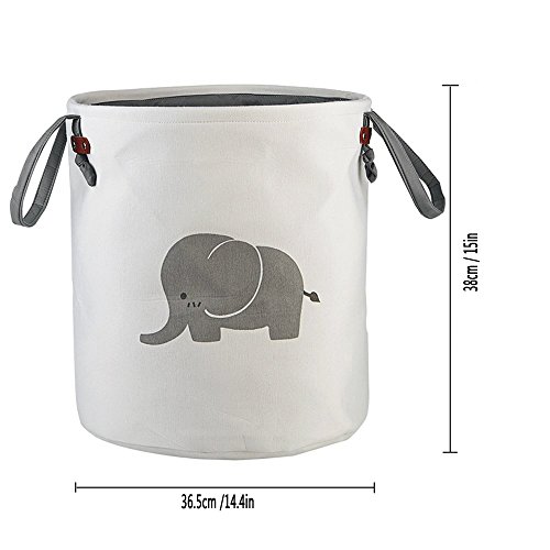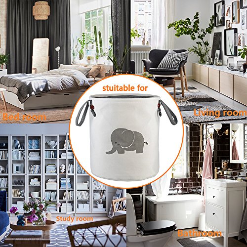 Outdoorfly Large Storage Basket Cotton Foldable,Laundry Hamper Bin Collapsible Waterproof with Long Handles for Clothes Baby Toys Books Collection Organizer for Kids(Elephant) (Elephant)