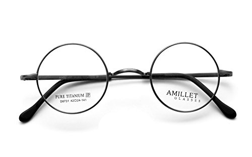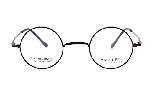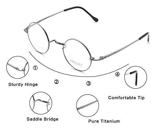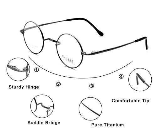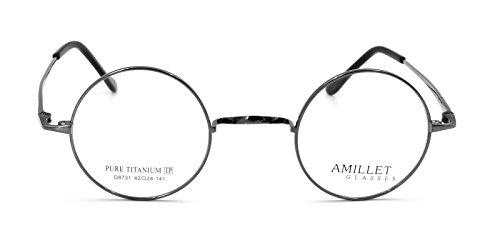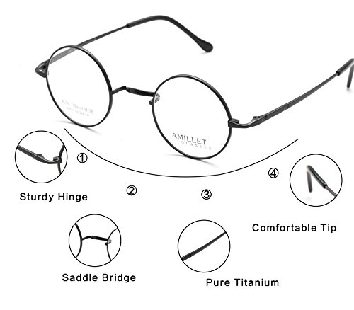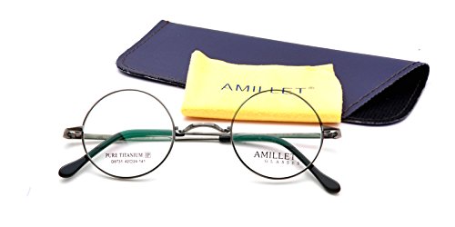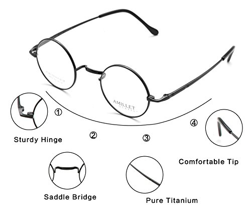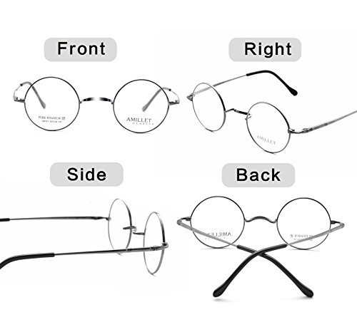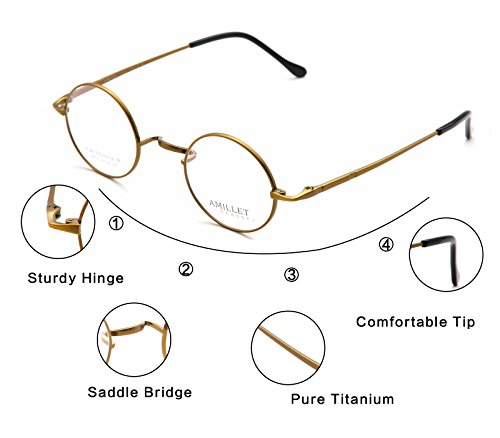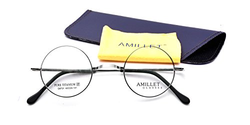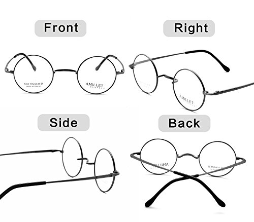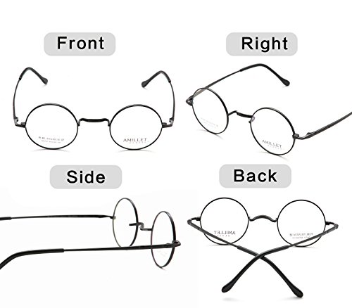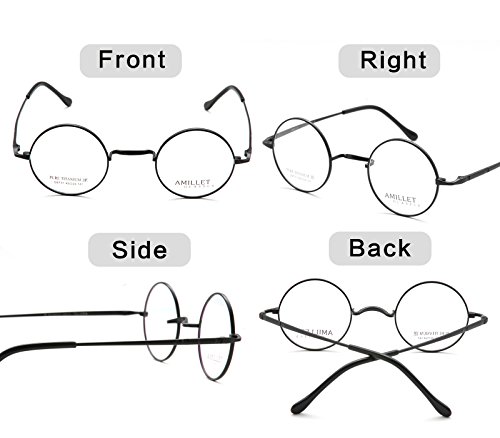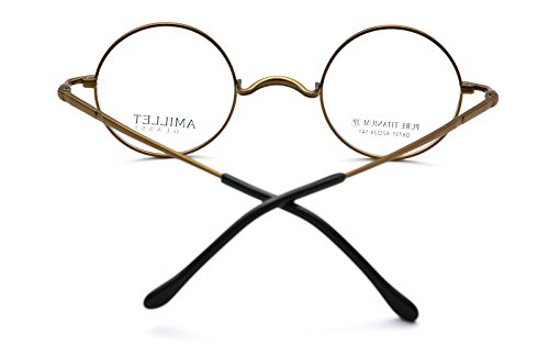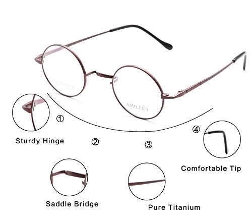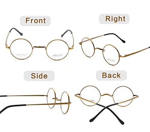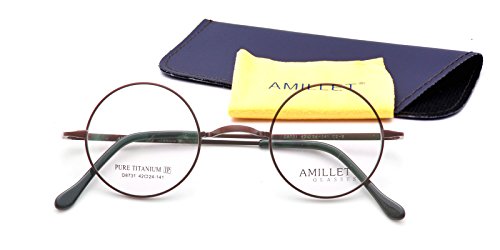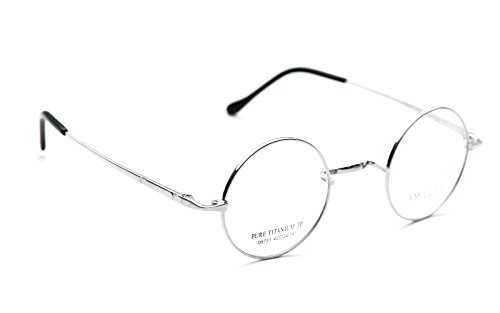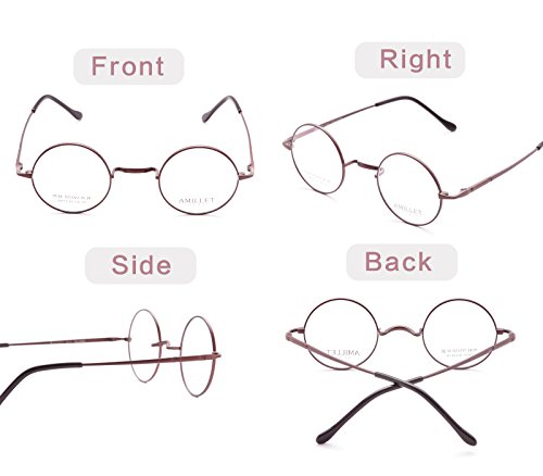 Product Description Every pair of glasses is crafted from pure titanium and plating in 8 different colors finishes. They are a lightweight pair of eyeglasses with his iconic round lenses, achieving a true vintage style. For Men or Women (Unisex) The frame made from pure titanium -particularly well-suited for the persons allergic to metal. Small round lenses will suit many face shapes and create an authentically retro look. Saddle bridge,Coated temple ends for comfort over the ear. Progressive/varifocals lenses friendly. Come with a leather pouch and cleaning cloth. 0