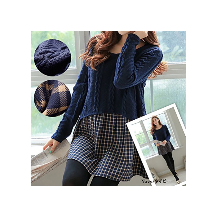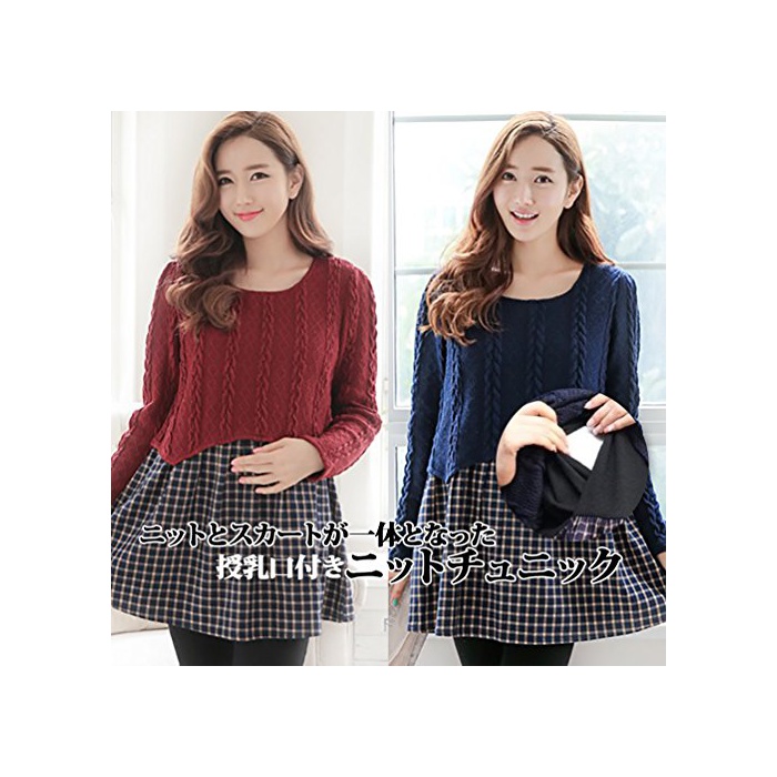 원본상품명: ミウォルナ マタニティ ワンピ?ス 授乳服 ニット チュニック 授乳口 マタニティウェア スカ?ト チェック