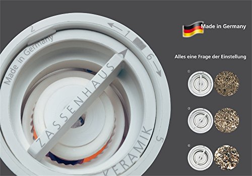 Studio : Zassenhaus Publisher : Zassenhaus Binding : Kitchen Product Description The Zassenhaus Frankfurt salt mill features a patented ceramic mechanism, which is harder than steel, completely wear-proof and corrosion free. Adjustable with 6 different settings from rough to fine grind to suit the user's requirements. The setting will not change during use or refilling, unlike mechanisms used by many other manufacturers. 0