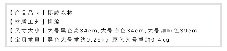 【宝贝重量】黑色大号重约0.25kg,小号重约0.1kg,原色大号重约0.4kg,铁编大号重约0.3kg