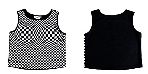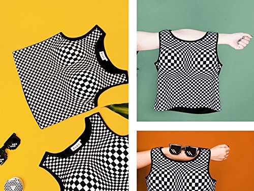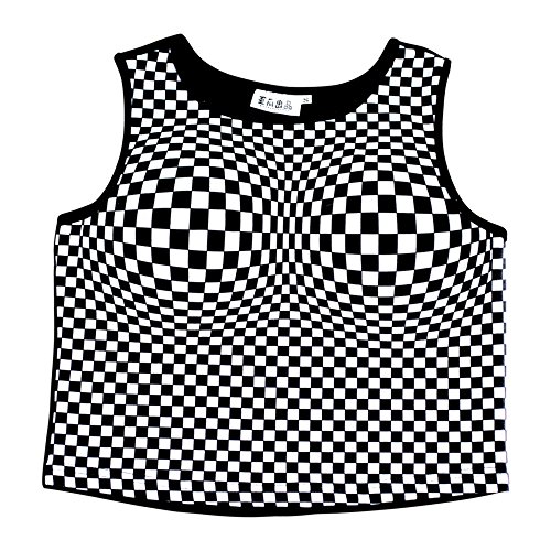 -. Feature : この服を着るだけで簡単に目の錯角を利用してバストが大きくなったように見えます。斜め格子状の白黒が位置によって拡がるデザインでいつもより豊胸に見えるユニークなノースリーブトップスです。不思議なおもしろグッツとして。 / S:着丈43cm、胸囲41cmx2  M:着丈45cm、胸囲43cmx2  L:着丈47cm、胸囲45cmx2 素材:伸縮性のあるファイバー繊維 / スタイリッシュなチェック柄のタンクトップです。胸周りの柄に歪みを持たせることにより錯視の効果で胸を大きく見せることができます。素材には伸縮性の高いライクラファイバーを使用しており、体にぴったりフィット。体のラインをすっきり見せることによって胸は大きいのにスリムな理想のボディラインを表現できます。背面を黒一色のデザインにすることで引き締め効果も抜群、背中側もすっきりしたシルエットにまとめられます。サイズはSからLまで展開しております。体にぴったりフィットするサイズをお選びください。お手頃価格なのでジョークグッズとしてお使いいただいたり、ちょっとしたプレゼントにするのもお勧めです。スタンダードなチェック柄なので、普段使いとしてジャケットのインナーにも大活躍です。