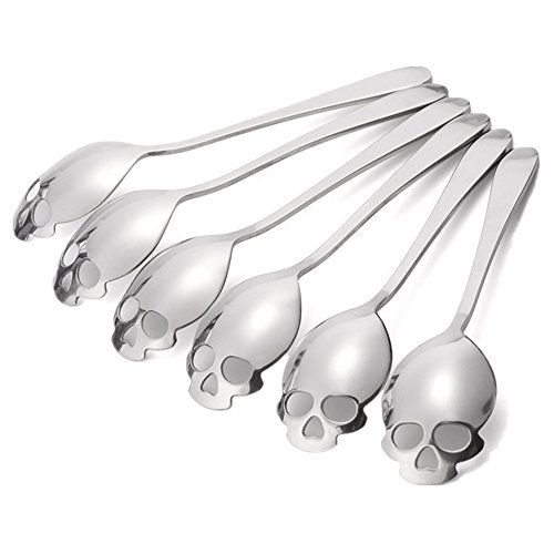 Studio : Bling Bling Publisher : Bling Bling Product Description ★Description The skull shape makes the spoon look cool and stylish. It is a fun and decorative accessory for your daily life. The funny spoon can also encourage your kids to eat more, and stir kinds of drinks food. The opening eyes and nose make it easy to shake off excess sugar to curb your sugar consumption. Nice looking spoon which are in a creative skull shape. Convenient and lightweight, no spotting or rusting, easy to clean and DISHWASHER SAFE. Cool and stylish design, ideal gift for spoon collectors who are obsessed with skulls. ★Specification Material: High quality food grade 304 Stainless Steel Color: Silver Style: Skull Dimensions: 5.9x1.4x0.1inches Item Weight: 0.88oz (25g) ★Package List 6 Pack Skull Sugar Spoon GUARANTEE All products from our company enjoy the long-life guarantee and our superb after sale service. We guarantee you'll love our products, and if you aren't absolutely satisfied, return it within 30 days for a refund, no questions asked.