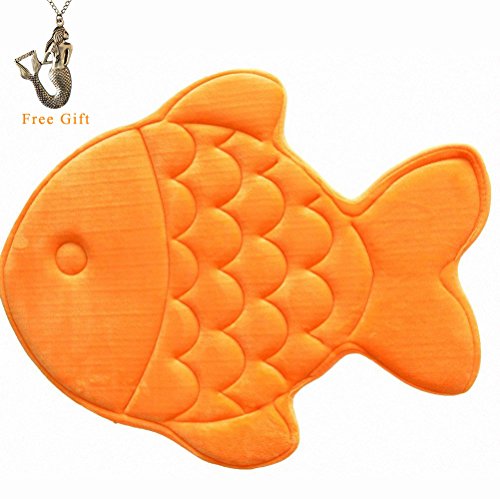 Hughapy Slow Rebound Memory Foam Children Bath Rug Christmas Fish Slip Resistant Coral Fleece Mat Doormat Carpet (Orange)