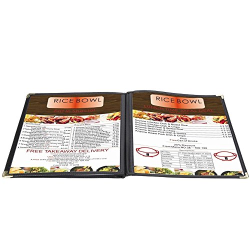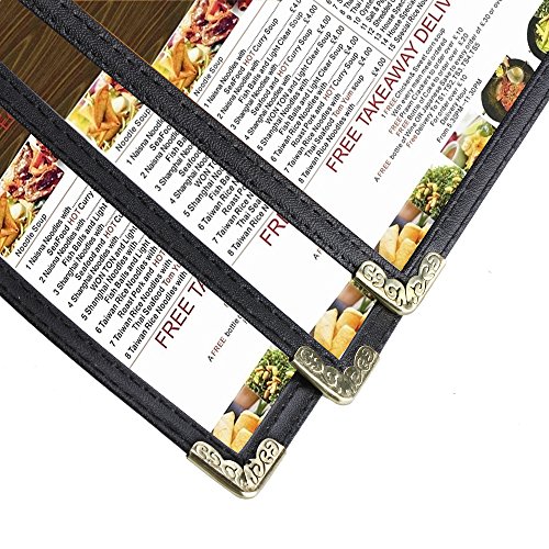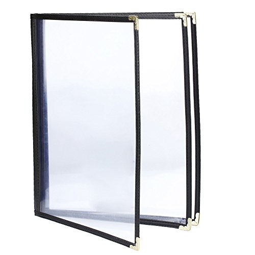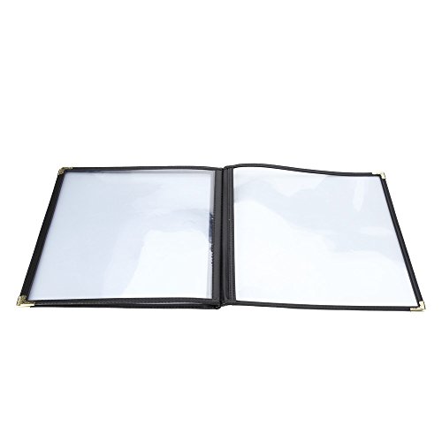 Flexzion Menu Cover 8.5x11 inch Black Triple Fold Book Style Holder with 3 Page 6 View Protective Corner For Restaurant Hotel Deli Cafes Bars Pubs