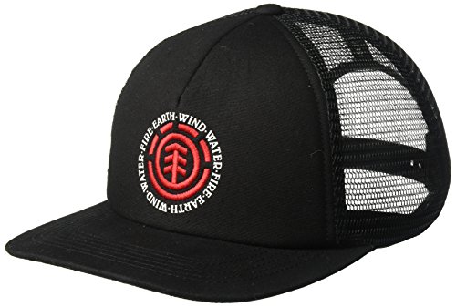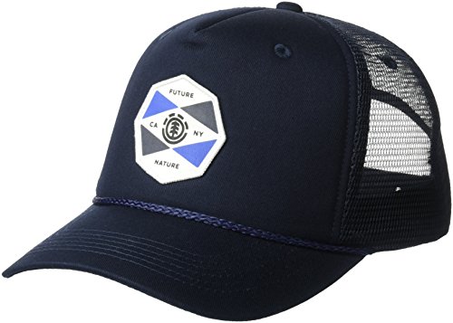 -. Binding : Apparel -. Brand : Element -. Department : mens -. Feature : Classic trucker cap, solid and color blocking heavy duty canvas / Thin cord detailing, mesh backing, polyvinyl chloride back closure / Front narrowed seasonal P.R.Inted patch -. Label : Element -. Manufacturer : Element -. PackageQuantity : 1 -. ProductGroup : Apparel -. ProductTypeName : HAT -. Publisher : Element -. Studio : Element -. Title : Element Men's Emblem Ii Trucker Cap