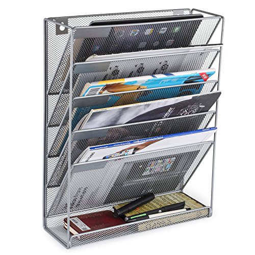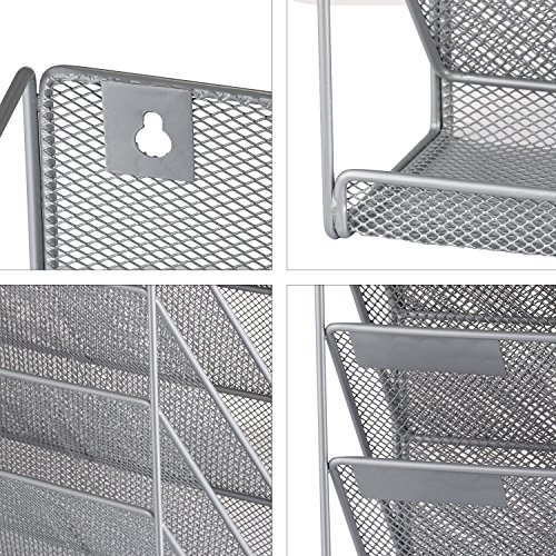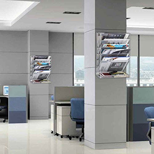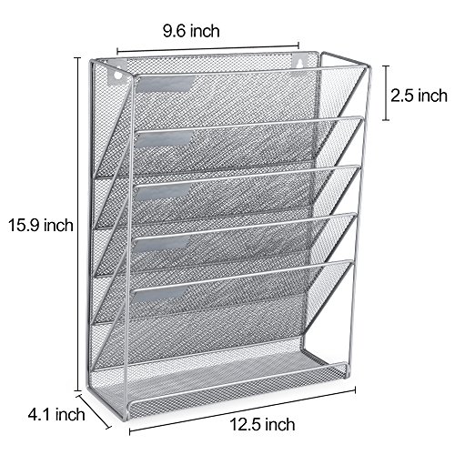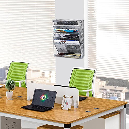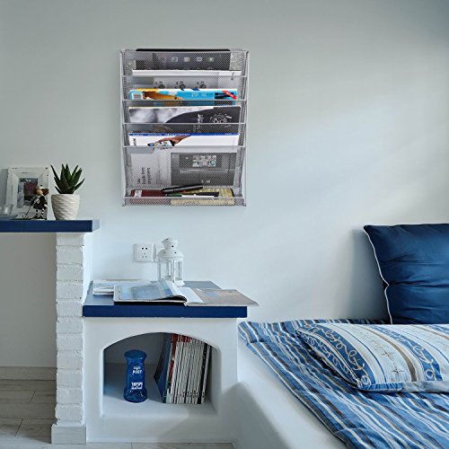 SamStar 6 Tier Mesh Metal Wall Mounted File Organizer Document Holder for Office Home, Silver Gray