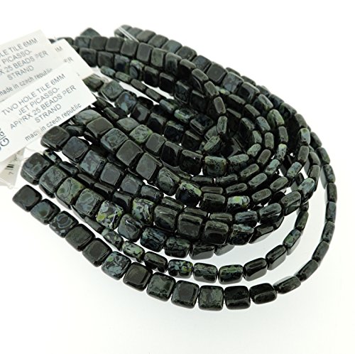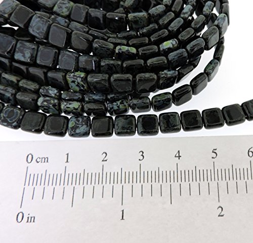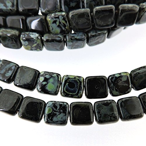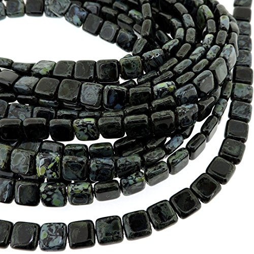 Czechmate 6mm Square Glass Czech Two Hole Tile Bead - Black Picasso