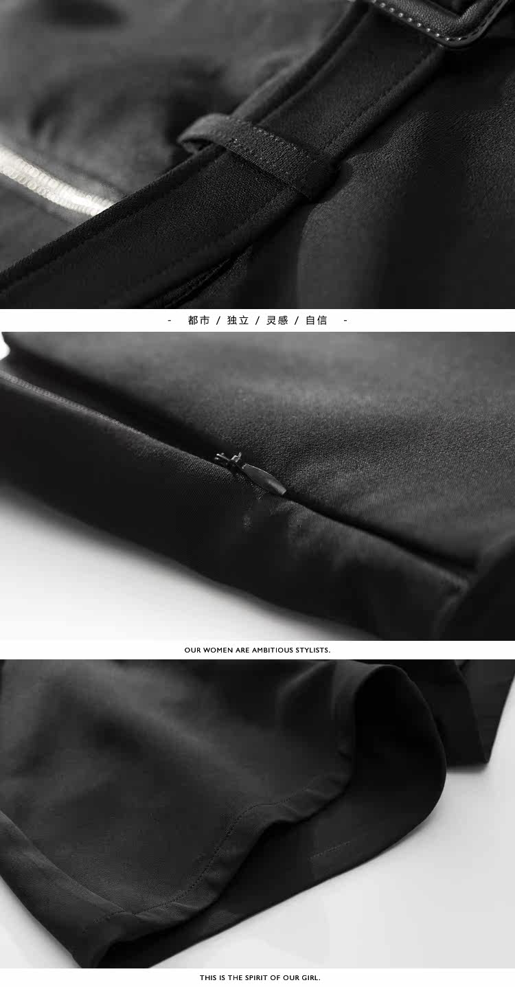 | 面 料:77.1%聚酯纤维17.7%粘纤5.2%氨纶颜 色:黑色 |