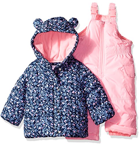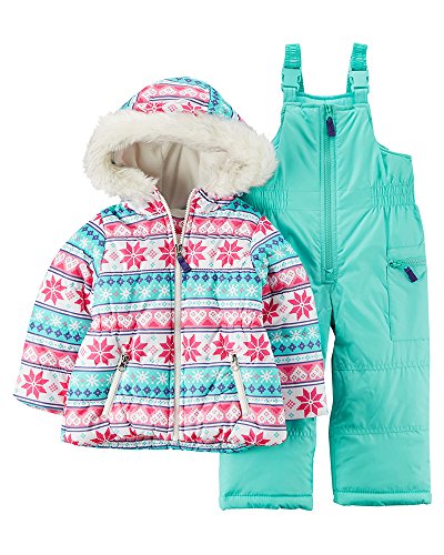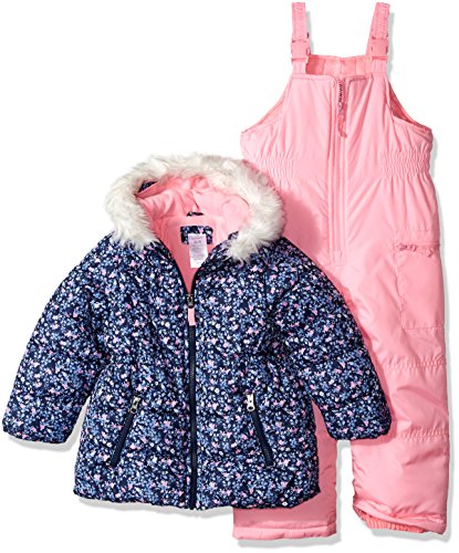 Snowsuit with snow bib and printed jacket with fur lined hood