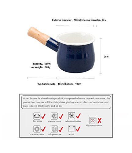 Why we choose Enamel Mini pot for warmig smaller liquid portions? ●Enamel is a glass material, smooth surface, not easy to breed bacteria, easy to clean and maintenance. ●Environmental non-toxic, enamel layer has excellent chemical stability, enamel has resistance to acid and alkali composition of corrosion, suitable for cooking food and storage of food. ●Milk pot has simple and elegant design, so that the pot looks more pretty, you can make food look more delicious. ●When you cook food, the design of the wooden handle can make your hand not hot, Pour Spouts design makes easy pouring. ●Enamel pot to maximize the release of food taste, so that you can cook a very delicious dishes. ●Caution: This product can not be used in microwave ovens, outdoor grills and bonfire.