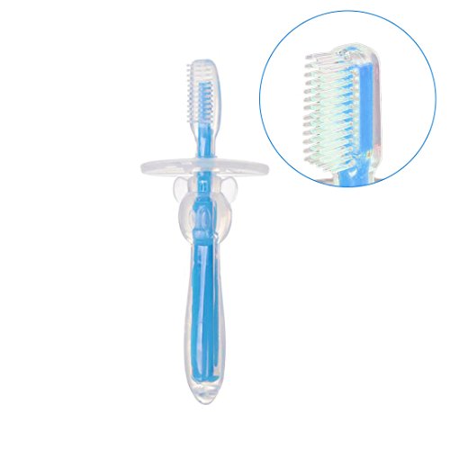 -. Binding : Baby Product -. Brand : Multifit -. Feature : Made of Food-grade silicone, which is nonhazardous for babies of 6 months to 2 years / Size: length: 4.9inches, enough for baby to hold and use / Compact and flexible brush head design, can easily scurb between baby tooth / Removable safety slider design, in case the toothbrush get too deep into the mouth and hurt your baby / Note: use hot water to swash and clean the brush before use -. Label : Multifit -. Manufacturer : Multifit -. ProductGroup : Baby Product -. ProductTypeName : BABY_PRODUCT -. Publisher : Multifit -. Studio : Multifit -. Title : Multifit Baby Safe Silicone Training Toothbrush Infant Soft Bristle First Teether
