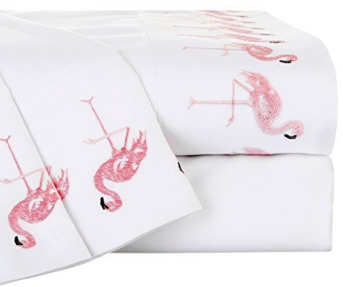 Studio : Coastal Home Publisher : Coastal Home Product Description Coastal Home adds a touch of coastal style to your home decoration. This polyester microfiber sheet features a colorful flamingo embroidery. Set includes one flat sheet, one fitted sheet, and two pillow cases (one for twin size). 0