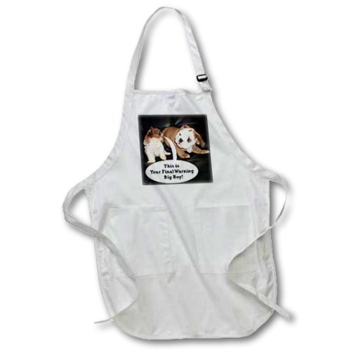 3dRose apr_40637_1 English Bulldog and Shih Tzu Puppies-Full Length Apron with Pockets, 22 by 30-Inch, White