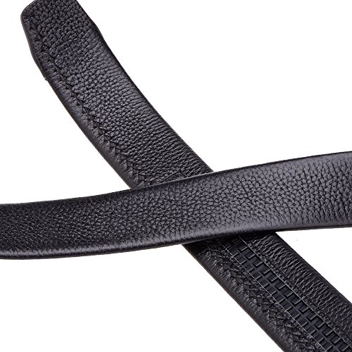 - Feature : First-layer cowhide leather, soft belt strap. / Sliding ratchet belt for men. / 1 3/8 '' inch (35mm) wide strap. / Belt size (full-length of belt strap) we send is 48" (120cm), if we don't receive your size message. If you need a size bigger than 48 inch (120cm), please choose packages shipped from HongKong and leave us a message. Fulfillment By Amazon doesn't offer the chance to choose sizes. / With the help of a pair of scissors, you can easily adjust belt length to fit your size according to our trimming picture. So if your belt is too big, please trim it.