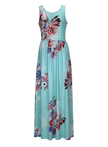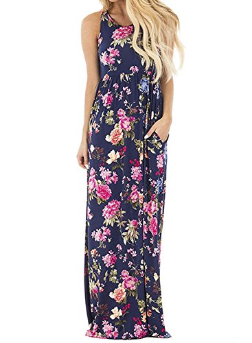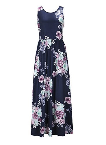 Assivia women's floral print sleeveless tunic long maxi casual dress is your summer best choice.Color:Purplish Blue,Pink