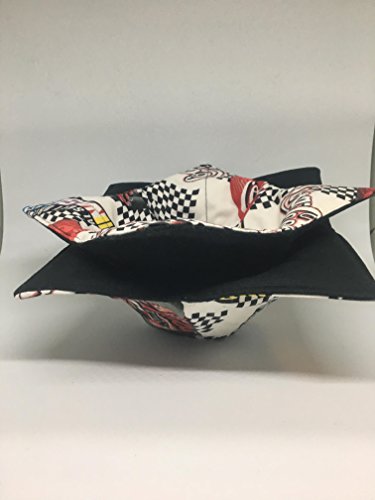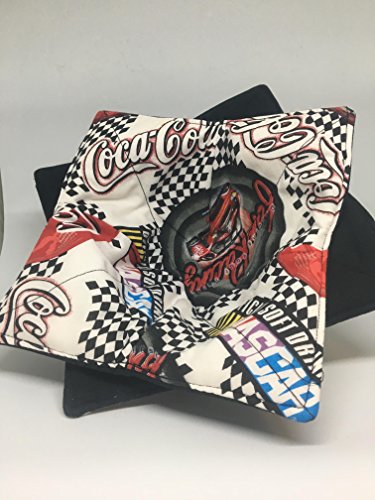 Product Description If you've ever burnt your fingers on a bowl out of the microwave or fumbled with oven/ microwave mitts this cozy is for you. It's Reversible cotton prints and cotton batting are microwave safe-Simply put the bowl in the cozy-pop in the microwave, cook up to 3minutes and then lift out using the corners. Take the bowl from Microwave to table or lap and protects from the hot bottom of the bowl. The cotton is a very cool Nascar Racing Official Coca Cola checkered and race car themed cotton with black on the reverse. Great for any Race car or collectible Coke product sponsored products. Use with either side. Makes for a great Hostess gift, Men or women's stocking stuffers, holiday gift or a staple in your own kitchen ** The batting is Pellon Microwave safe but caution is still needed. Do not use past 3minutes in the microwave, not for use in a conventional oven, If food spills onto the cozy, make sure to wash it. Built up food overtime can catch fire. ** 0