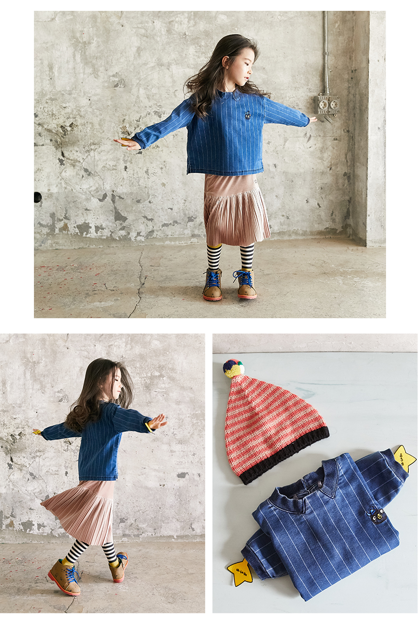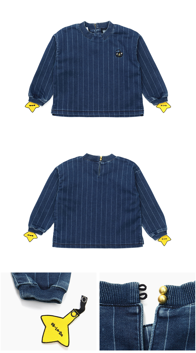 데님저지 소재의 변형핏 드롭소매 맨투맨입니다.