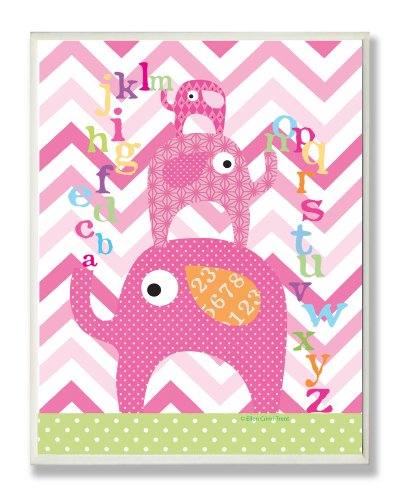 The Kids Room by Stupell Pink Stacked Elephants with the Alphabet Rectangle Wall Plaque