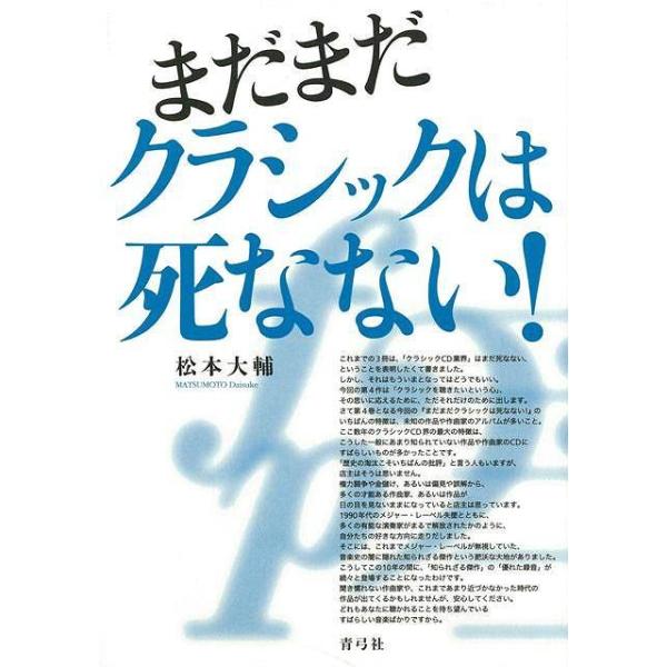 【商品基本情報】 商品名称:まだまだクラシックは死なない! 著者/出版社:松本 大輔/松本 大輔 初版発行日:2011/07/17 サイズ:A5判 ページ数:183 ISBN/JAN:9784787273079/4528189581692