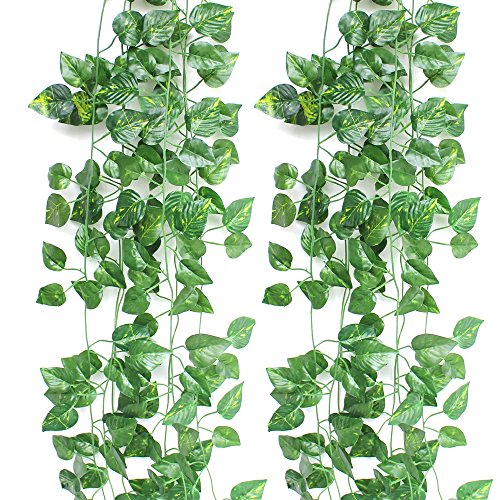 SelfTek 81 Feet Fake Scindapsus Leaves Artificial Greenery Garland Hanging for Indoor and Outdoors Garden Decoration (12pcs)