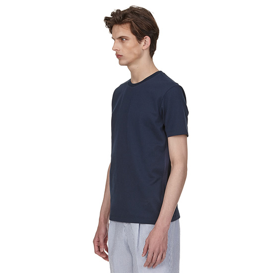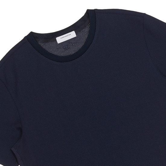 - 도트 자카드 패턴을 적용하여 멋스러운 남성 티셔츠.